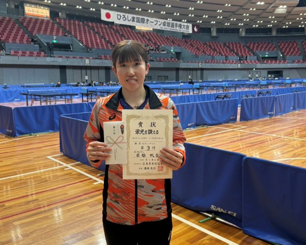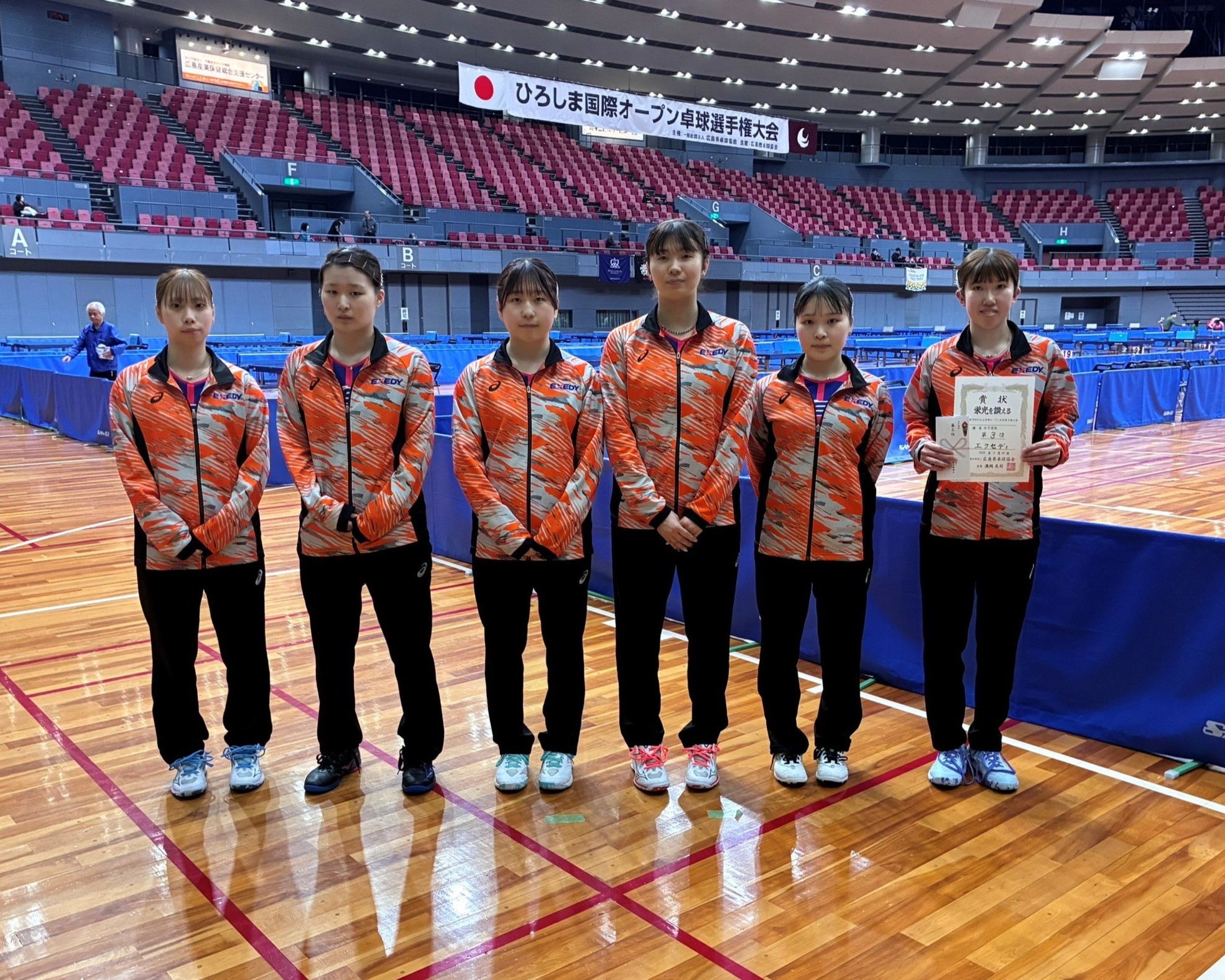 3月27日~29日まで広島県立総合体育館で開催されたひろしま国際オープン卓球選手権大会に出場しました。団体で3位、シングルスで岩越選手が3位と好成績を残しました。